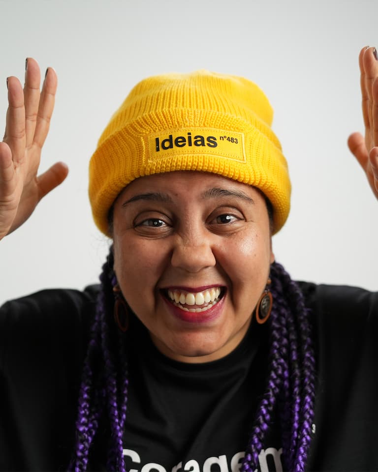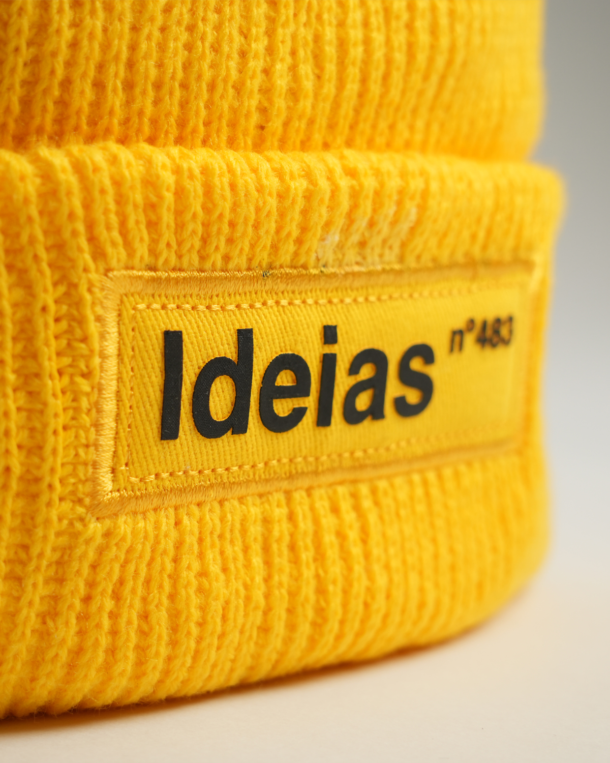 A touca traz a palavra Ideias na parte frontal.